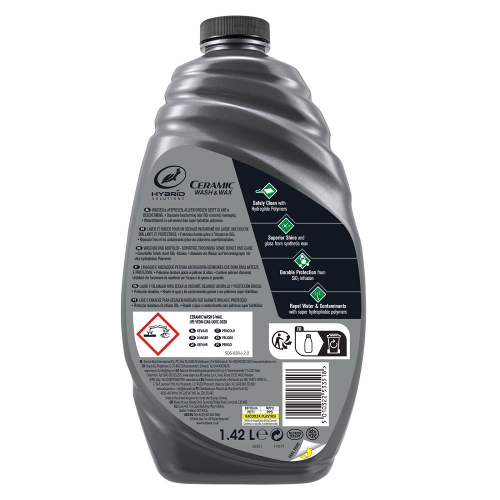 Этот шампунь обеспечит максимальную гидрофобность (водоотталкивающую способность) даже после одного использования, его можно использовать вместе со всеми продуктами Hybrid Solutions для укрепления керамического покрытия и повышения защитного слоя на поверхности автомобиля.